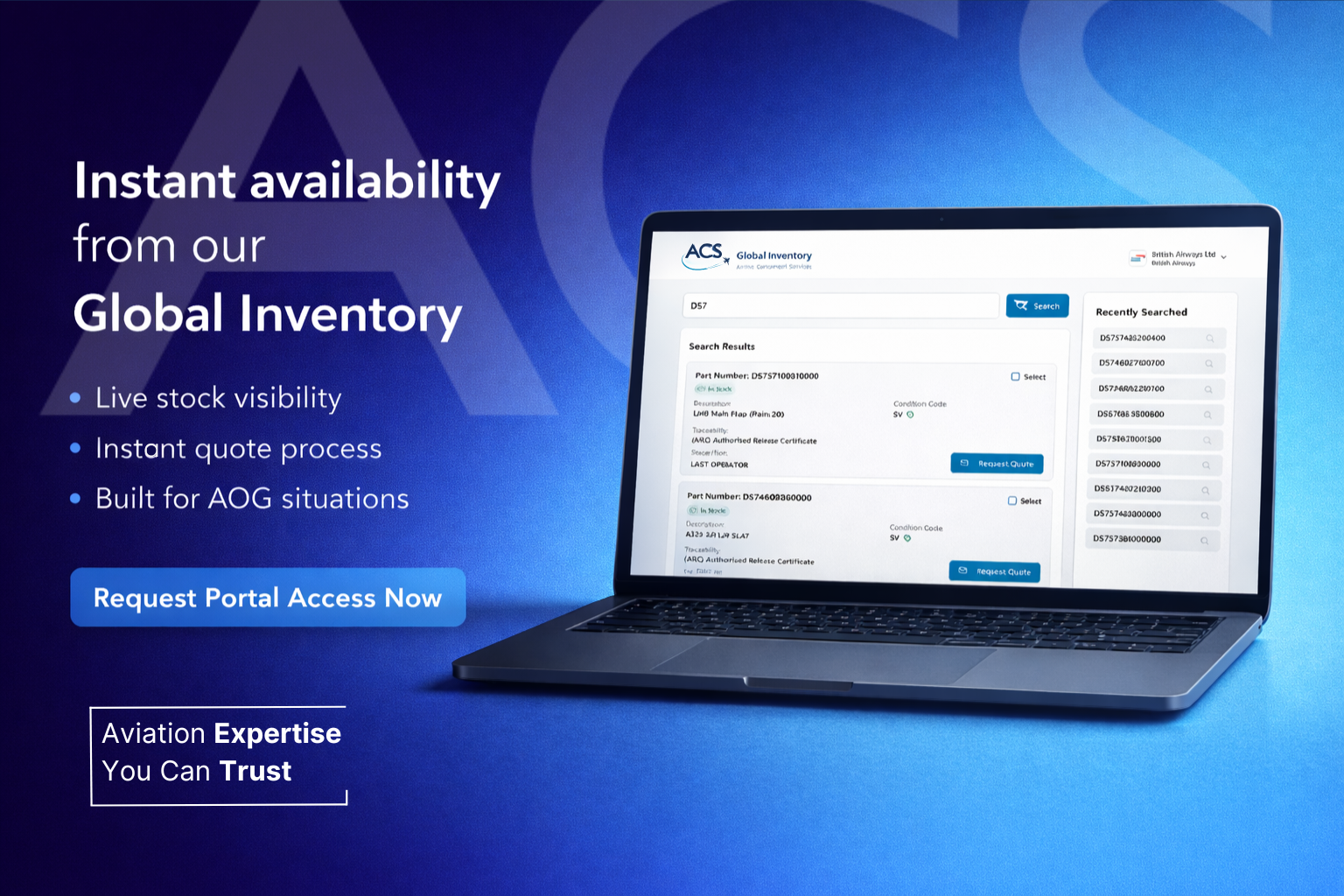 Access our Inventory quicker than ever. Search parts. Check availability. Request a quote. Instantly.